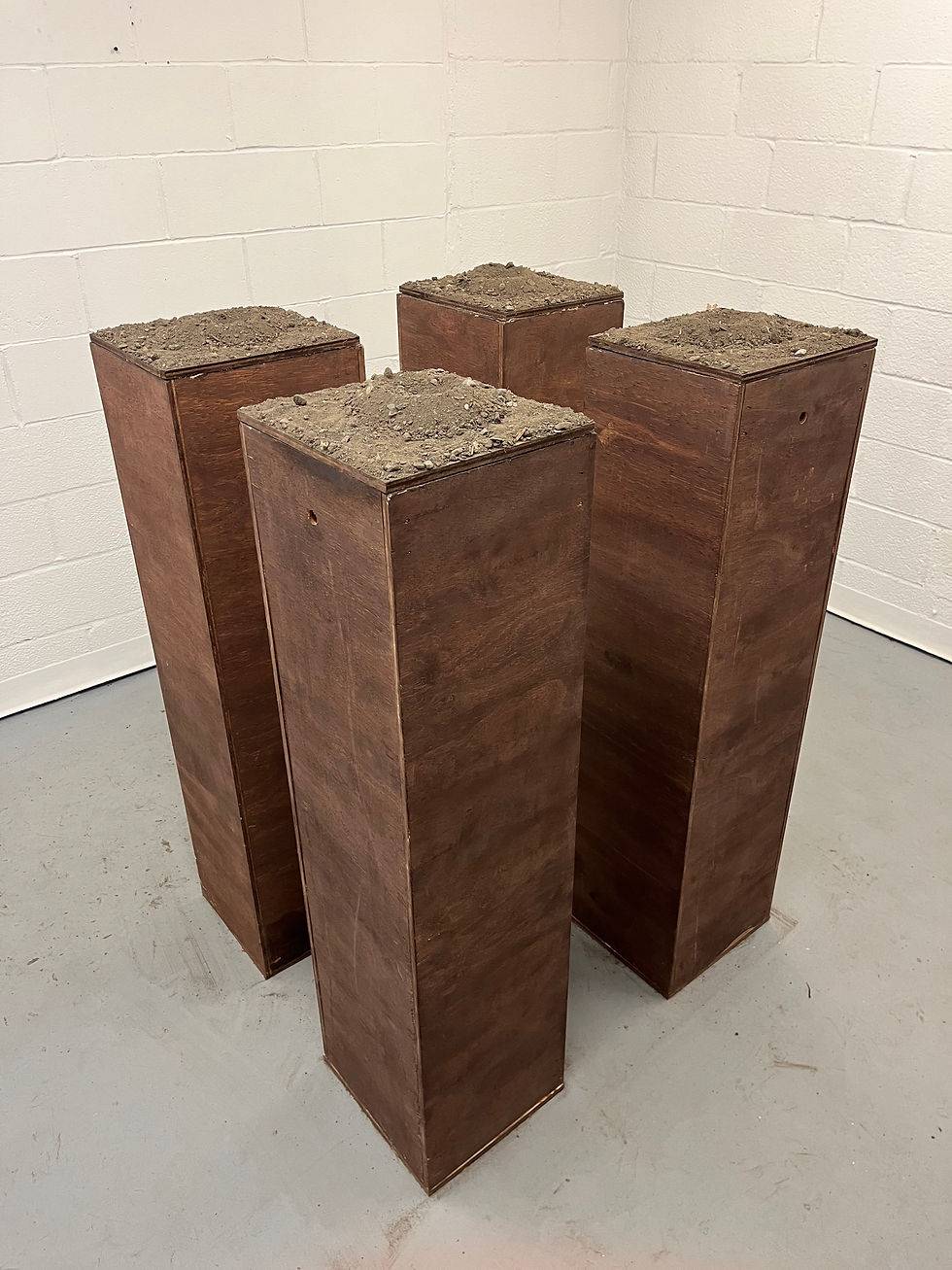 Wood, Soil, Seed branch, Glass, Grape vine, Cigarettes, Micro LED, Burlap